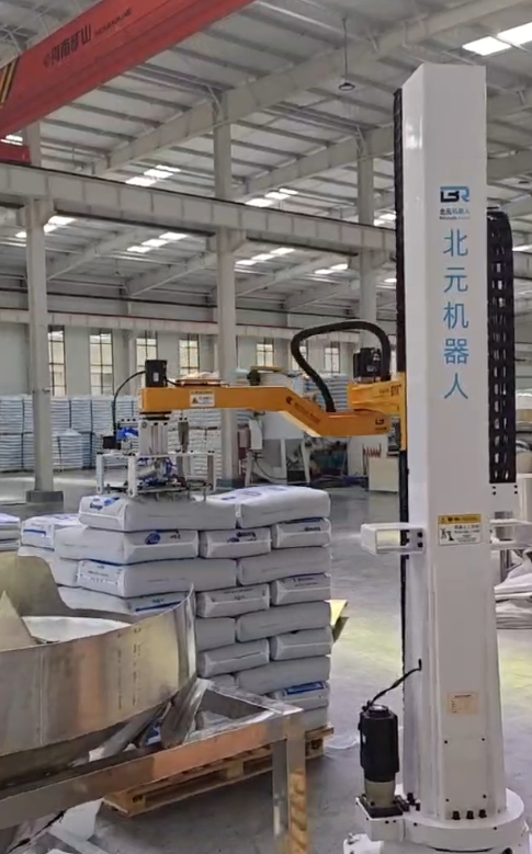 在现代化的工业厂房里,一台北元机器人正平稳运转,机械臂精准地将一袋袋物料码放整齐,成为自动化生产线上的亮眼主角。这一幕,正是中国智能制造向高效、精准、无人化迈进的生动缩影。